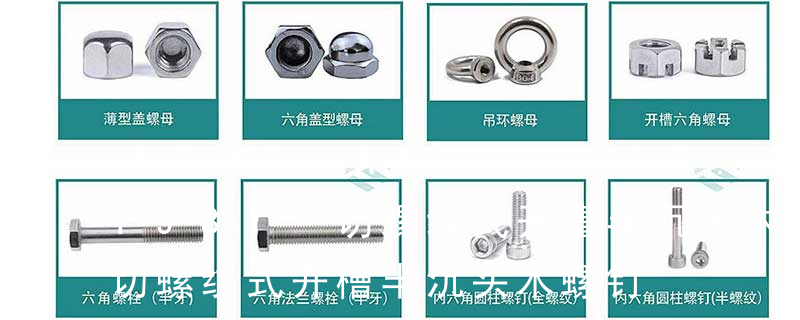 六角螺母 Hexagon nuts 方螺母-C Square nuts 六角头螺钉 Hexagon screws 六角头圆柱端 紧定螺钉 Hexagon set screws with full dog point 薄型方螺母-B Square nuts without bevel (pressed nuts)六角头木螺钉 Hexgon hea
