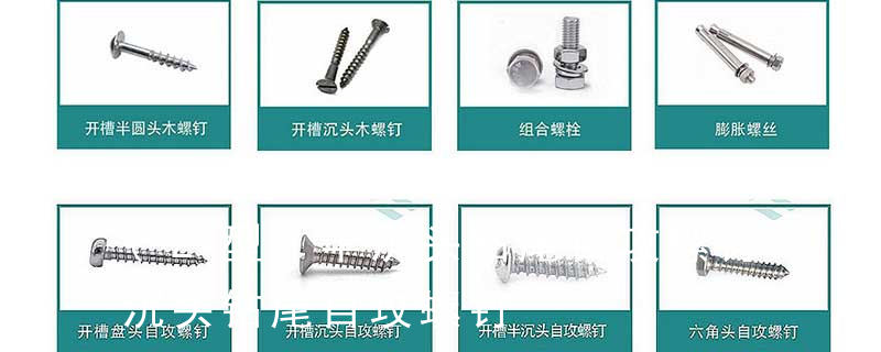 钻尾螺丝根据执行标准可分为:国标GB/T,德标DIN,日标JIS,国际标准ISO。A. 根据用途和形状还可以分为以下几个类别:1.十字槽盘头自钻自攻螺钉.Cross recessed pan head drilling screws with tapping screw thread 执行标 1.机螺钉 2.自攻螺钉 3.钻尾螺钉 4.墙板钉 5.纤维板钉 6.木螺钉 7.六角木螺钉 8.不脱出螺钉 9.组合螺钉 10.微型螺钉 11.家具螺钉 12.电子螺钉 头型 :1.六角头(hexagon head)2.六角头法兰面(hexagon head w