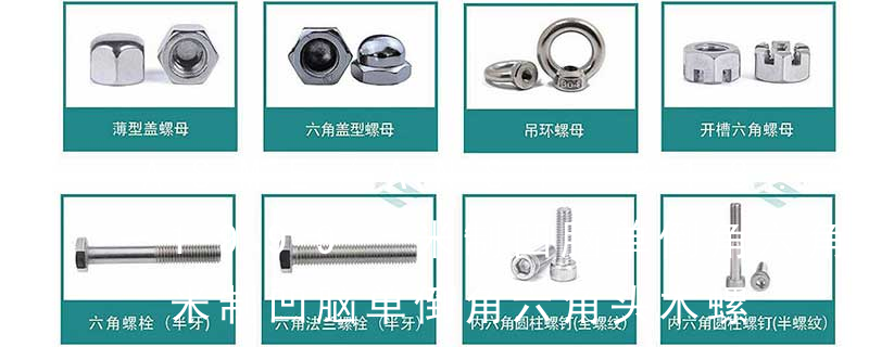 内角60度,外角120度。二、六角螺帽 六角螺帽也叫做六角螺母,一般螺帽有很多种类,有六角螺帽,有圆螺帽,方型螺帽等。六角螺母与螺丝、螺栓,螺钉相到配合的使用,起连接紧固机件作用。其中经1型六用螺母应用最广,C级螺 产品大类(一)、六角螺栓(HEXAGONHEADBOLTS)1、英制螺栓参照标准为ANSI/ASMEB18.2.1,日标参照JISB1180(韦氏牙)。英制参照BSW916(韦氏牙)。(1)、HEXMACHINEBOLT:无华司、有束尾、半牙六角螺栓,(2)、HEXTAPBOLT:无华司、无束尾、全