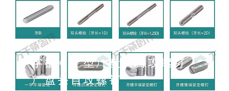 螺纹种类繁多。有自攻螺纹(宽牙螺纹)、机螺纹、干壁钉螺纹、纤维板钉螺纹、以及其它一些特殊螺纹。另外螺纹可分为单导程(单头)、双导程(双头)、多导程(多头)及高低牙双头螺纹。末端型式—末端型式主要有锯端、平端 自切自攻螺钉有以下几种型式:十字槽盘头自切自攻螺钉,十字槽沉头自切自攻螺钉。十字槽半沉头自切自攻螺钉,六角头自切自攻螺钉。3、自挤自攻螺钉(自攻锁紧螺钉)自挤自攻螺钉的螺纹一般为机螺纹,很少采用自攻螺纹。在扳拧