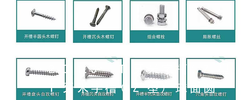 1.机螺钉 2.自攻螺钉 3.钻尾螺钉 4.墙板钉 5.纤维板钉 6.木螺钉7.六角木螺钉 8.不脱出螺钉 9.组合螺钉 10.微型螺钉 11.家具螺钉 12.电子螺钉头型:1.六角头(hexagon head) 2.六角头法兰面(hexagon head with flange) 3.
