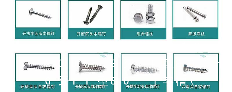 主要分类包括普通螺丝、机螺丝、自攻螺丝和膨胀螺丝三种。 有头螺钉Cap screw 过去限于全牙的扣件。 六角头螺钉Hex cap screw与大六角螺栓Hex bolt 顾名思义为头部为六角型的外螺纹扣件,设计为使用扳手转动。依照ASME B18.2.1标准,六