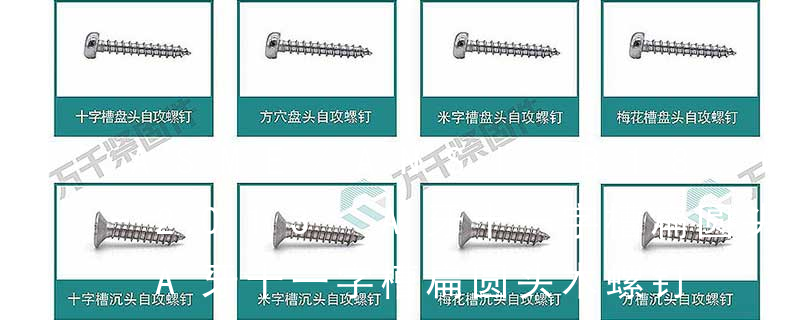 A: Machine Screw: 机械螺丝 B: Tapping Screw: 自攻螺丝 (分使用于金属与使用于塑料二种)B-1: Sheet Metal Tapping Screw. (铁板牙自攻螺丝)B-2: Plastic Tapping Screw. ( 塑料用, 自攻螺丝)C: Wooden Screw : 常用的螺丝的规格有:公制螺丝、美规螺丝、英制螺丝。主要分类包括普通螺丝、机螺丝、自攻螺丝和膨胀螺丝三种。螺丝是利用物体的斜面圆形旋转和摩擦力的物理学和数学原理,循序渐进地紧固器物机件的工具。螺丝是紧固件的通用说法