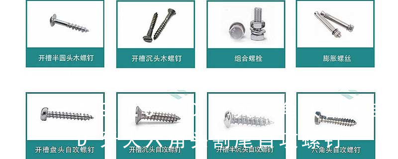 7.ASME B16.14-1991版 钢铁管螺纹管堵、内外螺丝和锁紧螺母 8.ASME B16.28-1994版 锻轧钢制对接焊小弯头半径弯头和180度弯头 9.ASME B18.2.1a-1999版 方头及六角头螺栓和螺钉 10.ASME PTC25-1994 压力泄放装置 性能试验规范 主要分类包括普通螺丝、机螺丝、自攻螺丝和膨胀螺丝三种。有头螺钉Cap screw 过去限于全牙的扣件。六角头螺钉Hex cap screw与大六角螺栓Hex bolt 顾名思义为头部为六角型的外螺纹扣件,设计为使用扳手转动。依照ASME B18.2.